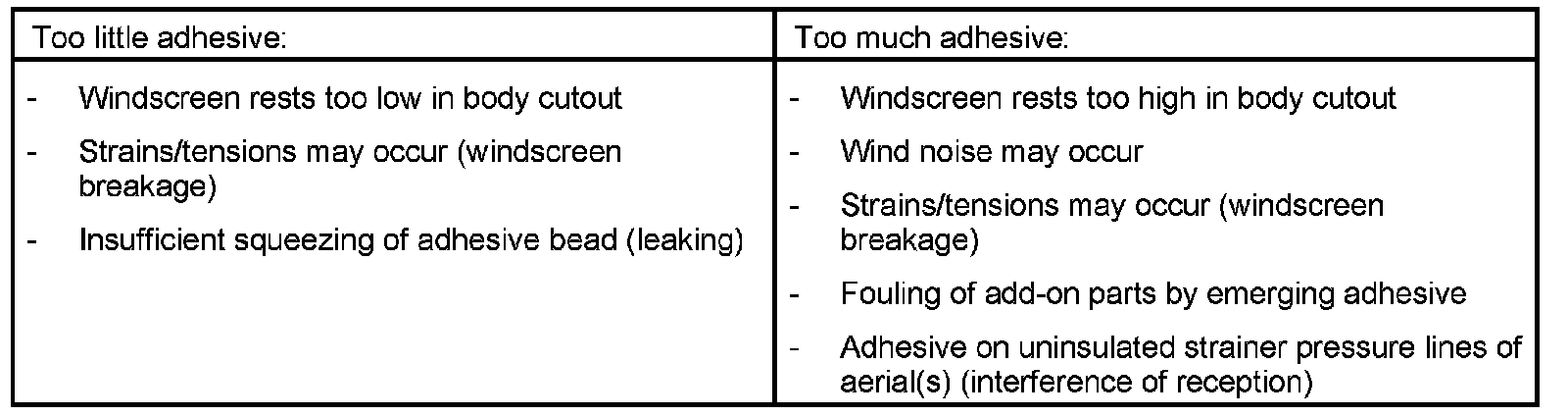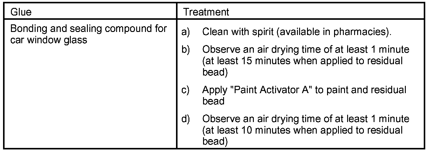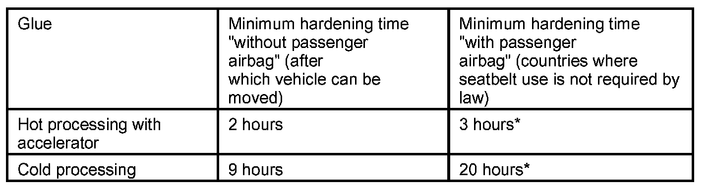 - After the adhesive bead has been applied, the window glass must be fitted within 5 to 10 minutes (depending on air humidity, temperature and use of accelerator).
