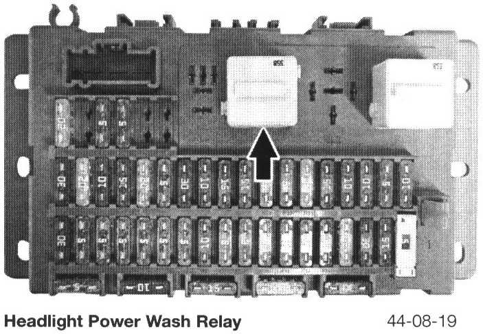The headlamp power wash pump, is controlled by a relay mounted in the passenger compartment fuse box. A low side switch in the BC1 activates it.