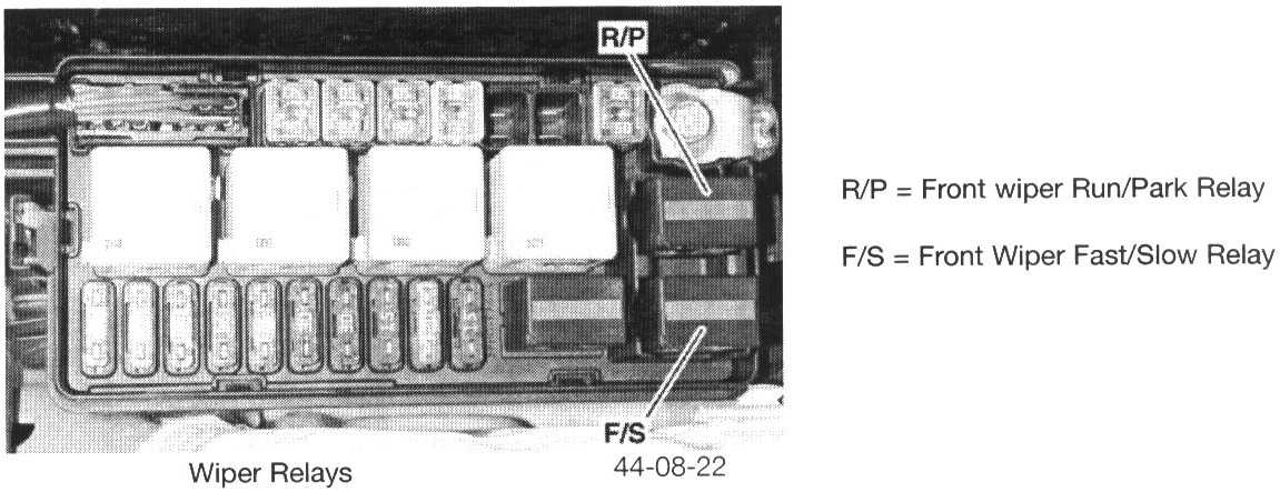 The other will select either fast or slow speed on the wiper motor (Front Wiper-Fast/ Slow Relay).