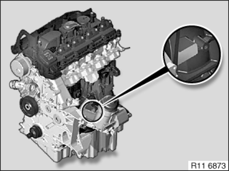 Drive in engine numbers at marked surface with impact tool.