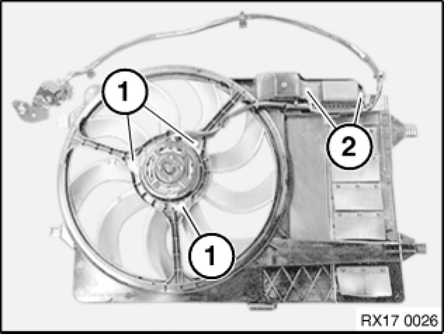 Remove fan motor, series resistor block and fan shroud.
