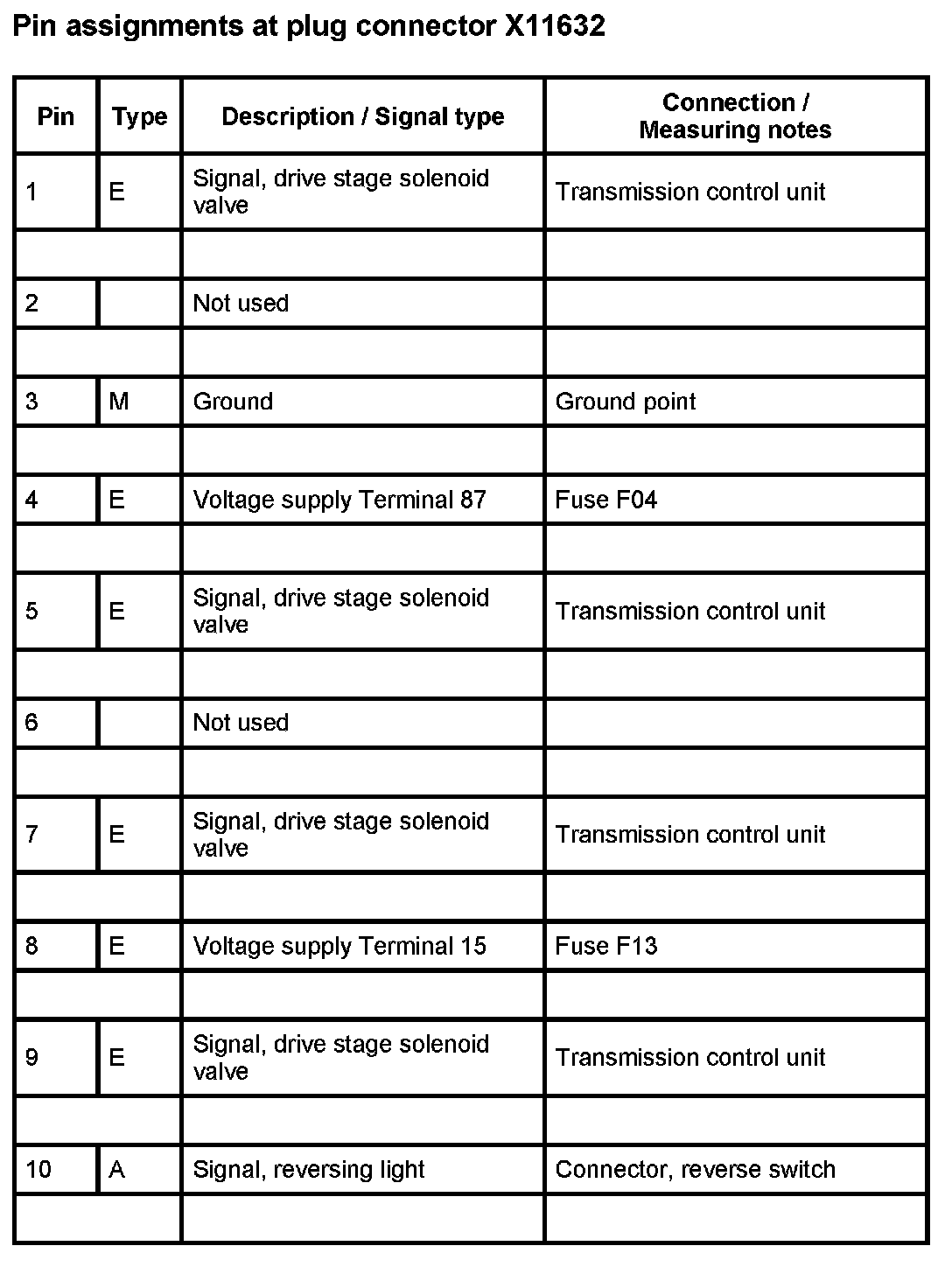 Y8505a Gear position switch (W11 Engine with EGS Transmission Control (AISIN))