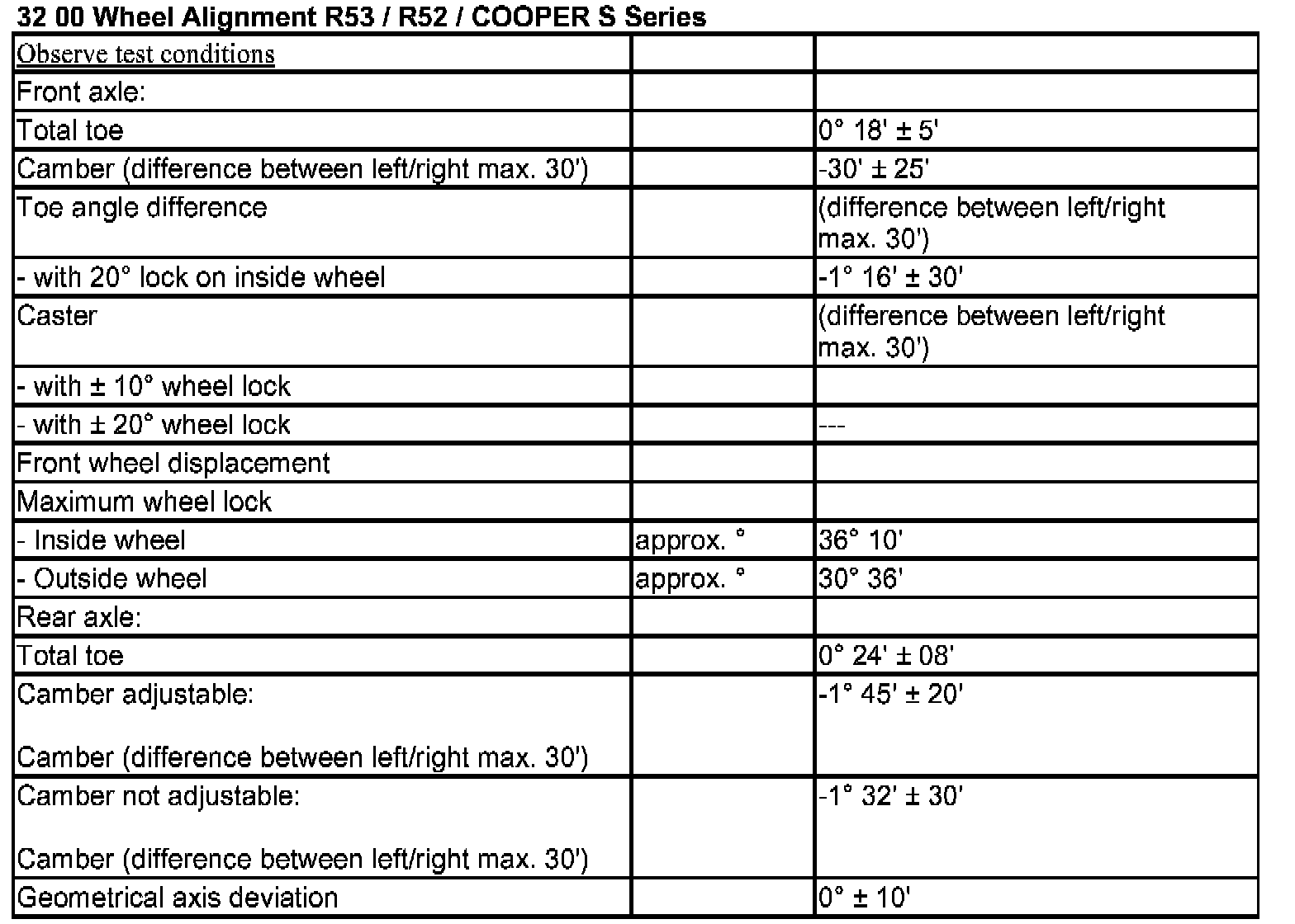 Observe the following test conditions prior to the chassis/wheel alignment check: