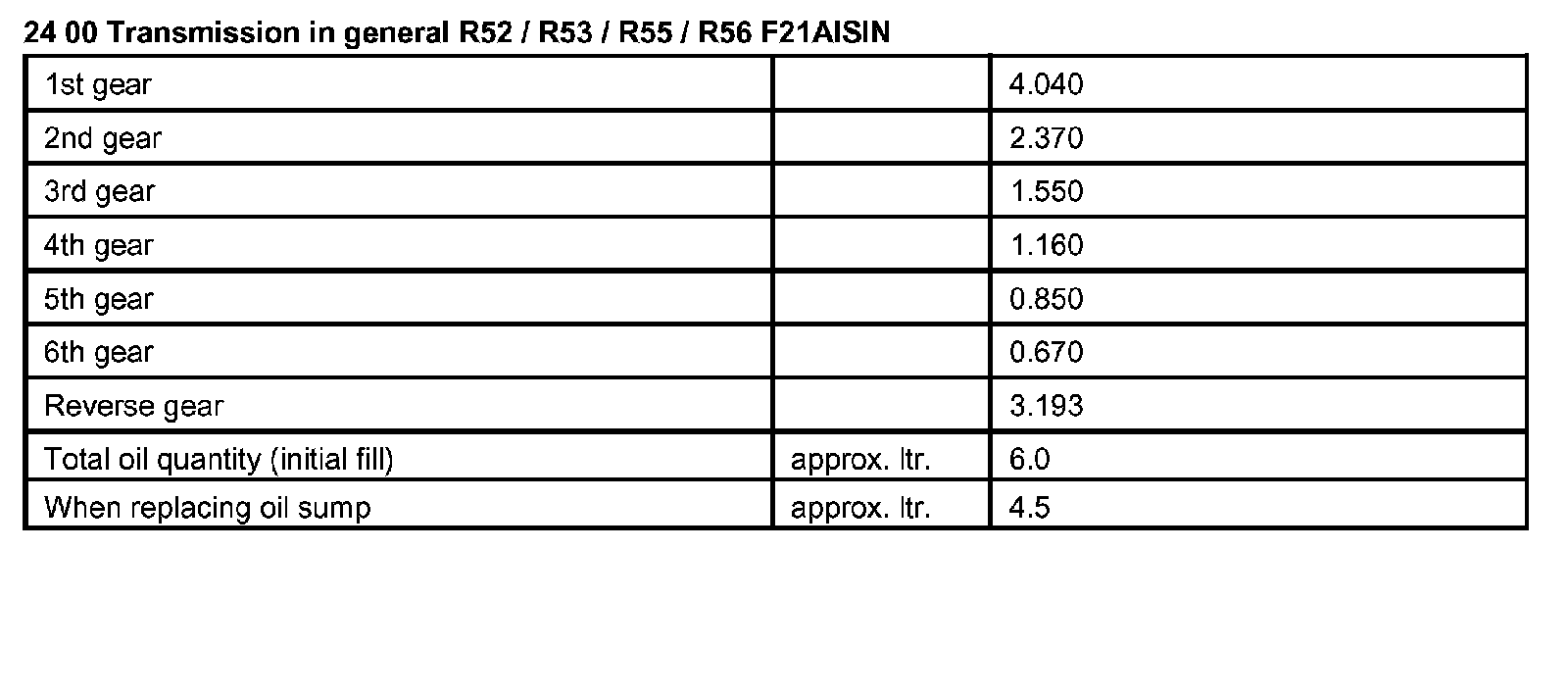 24 00 Transmission in general R52 / R53 / R55 / R56 F21AISIN: