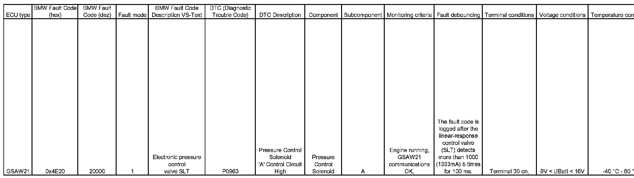 BMW [Hex - Dez] Code Charts