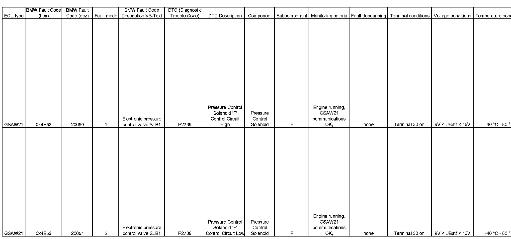 BMW [Hex - Dez] Code Charts