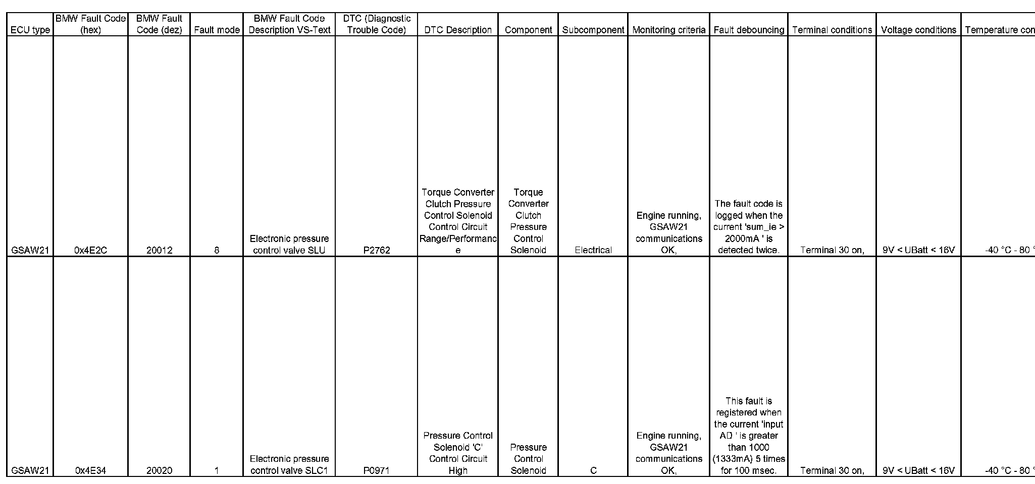 BMW [Dez - Hex] Code Charts