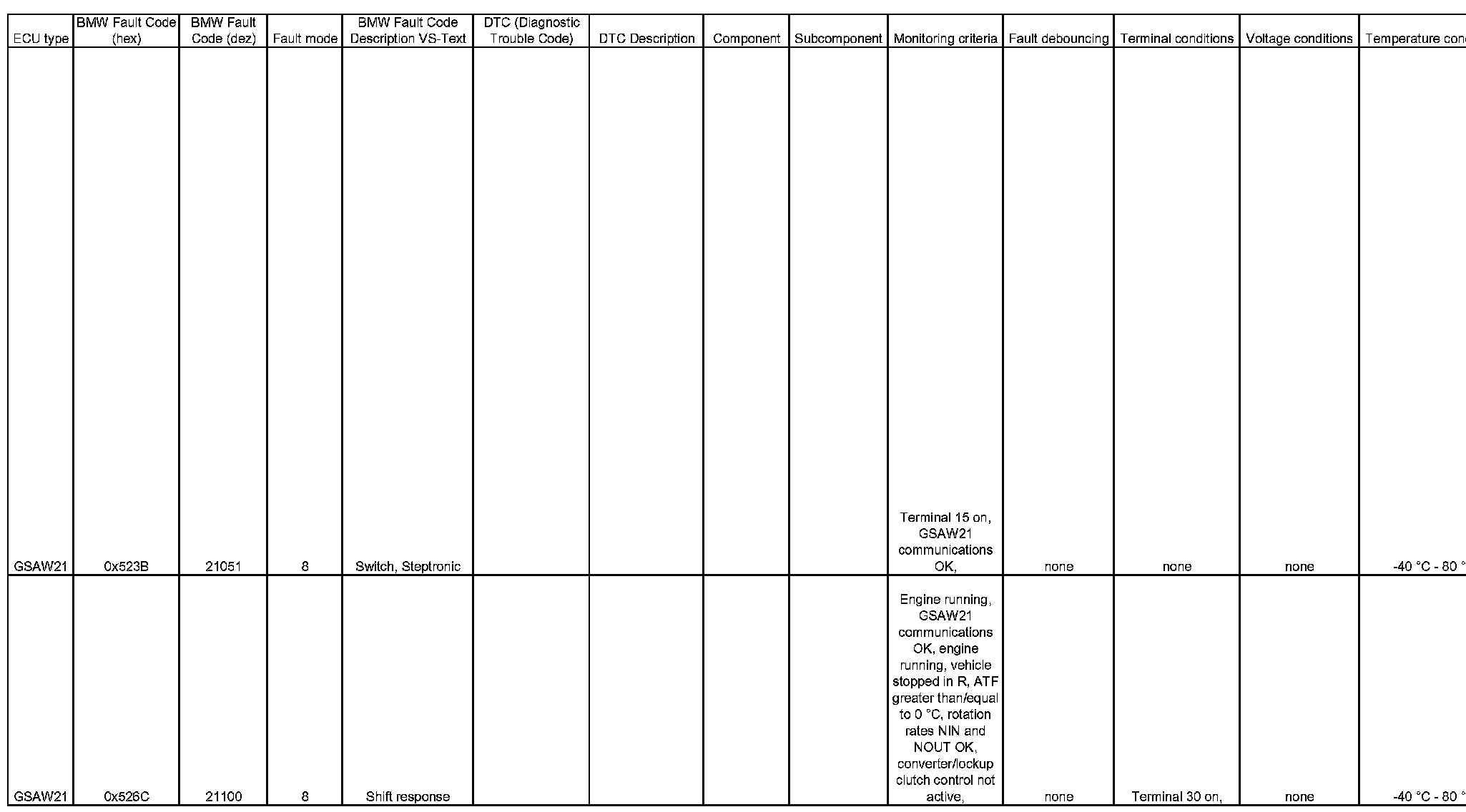 BMW [Dez - Hex] Code Charts