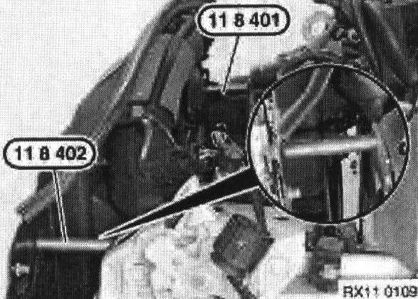 Remove dipstick retaining bolt (1) and move dipstick to one side.
