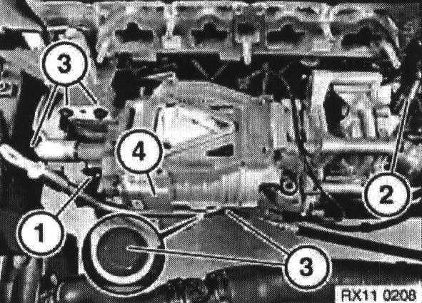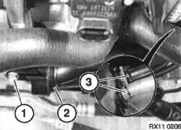 Remove supercharger inlet pipe (2) to access pipes (3).