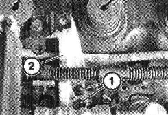 Remove bolts (1) securing right hand bracket and remove bracket (2).