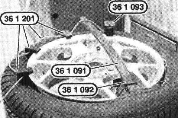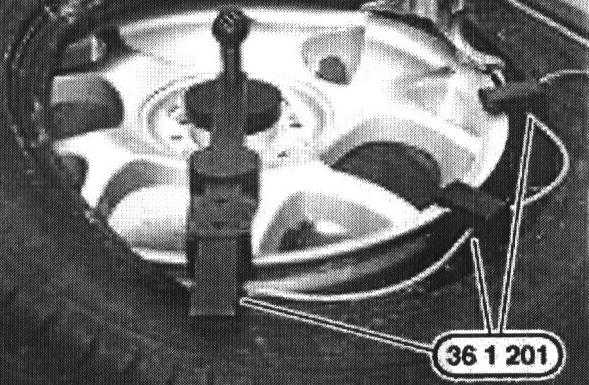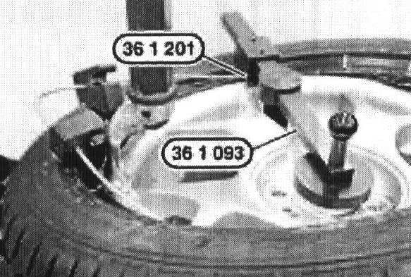 Position special tool 36 1 093 and special tool 36 1 201 as shown on rim flange.