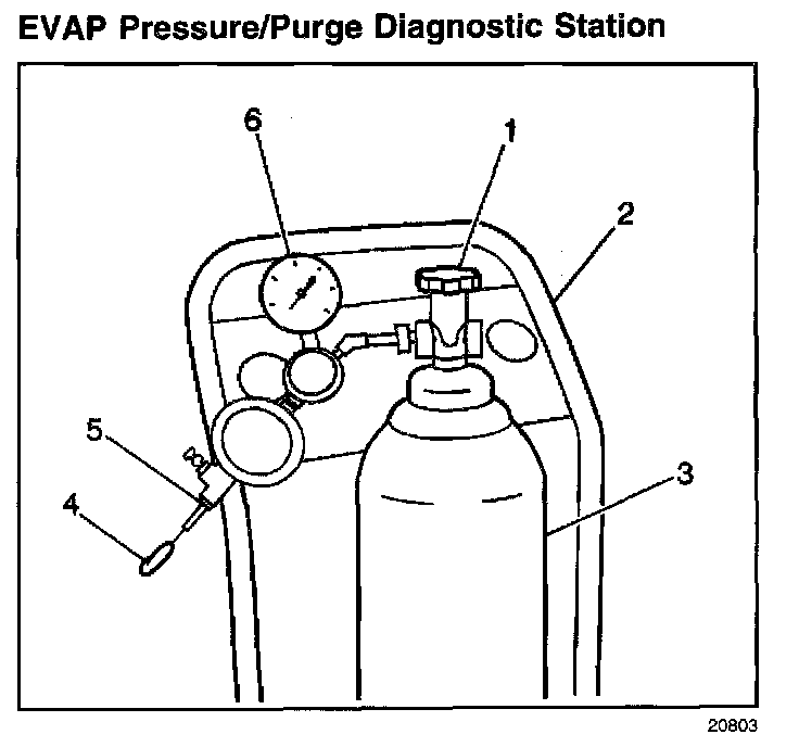 Use the J 41413 in order to locate the leaks in the EVAP system. This tool provides a clean, dry, regulated supply of nitrogen in order to pressurize the EVAP system. Refer to the directions on the cart for proper operation.