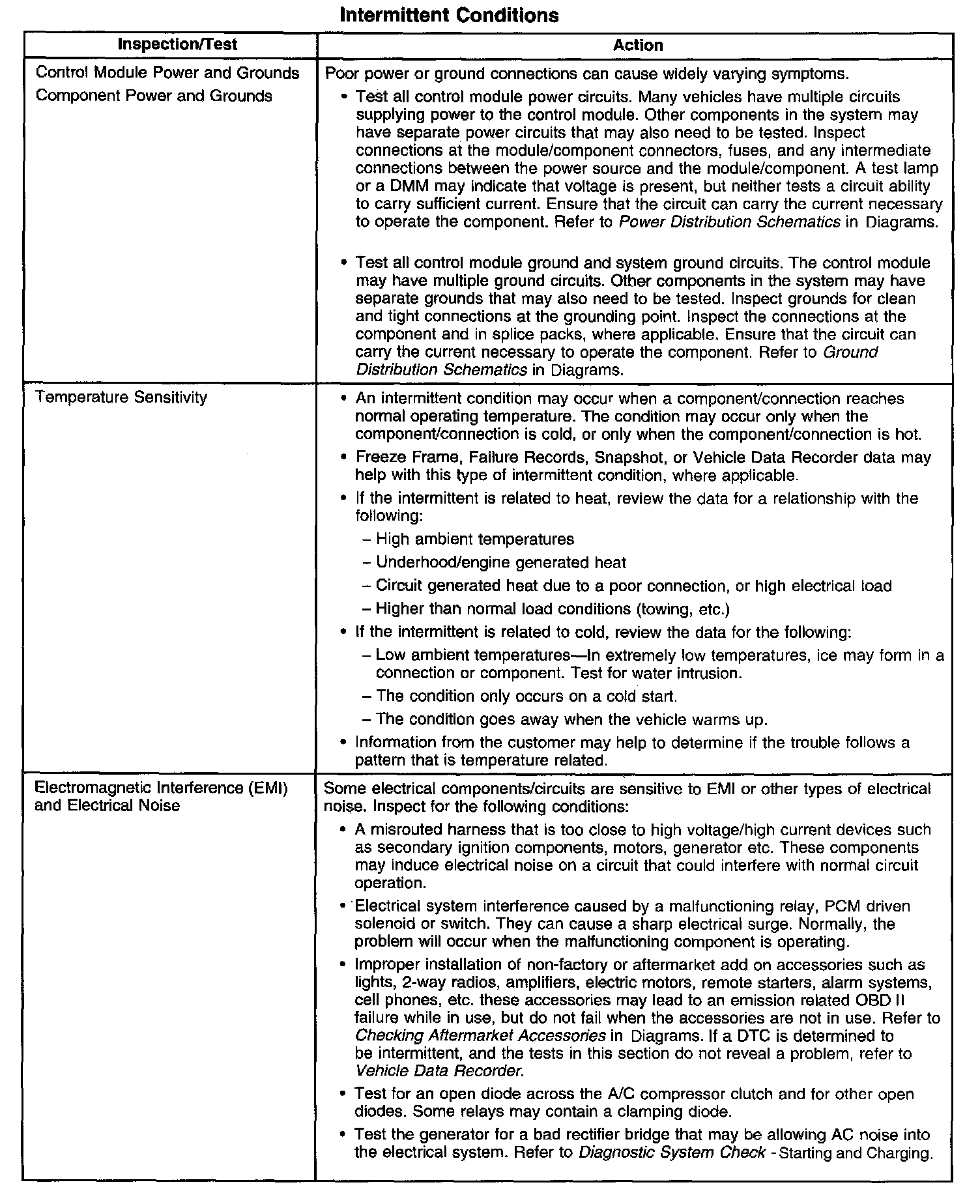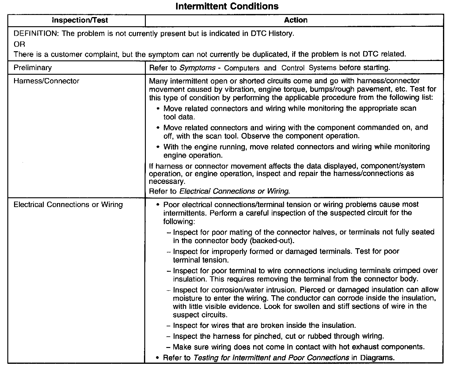 Faulty electrical connections or wiring cause most intermittent problems. Perform a careful visual and physical check for the following conditions: