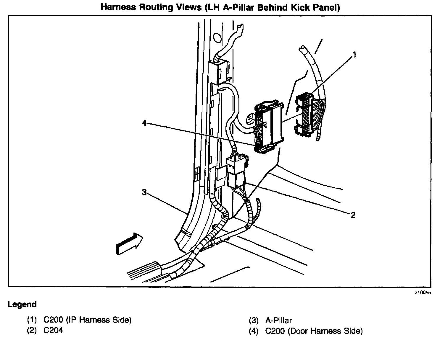 Harness Routing Views (LH A-Pillar Behind Kick Panel):