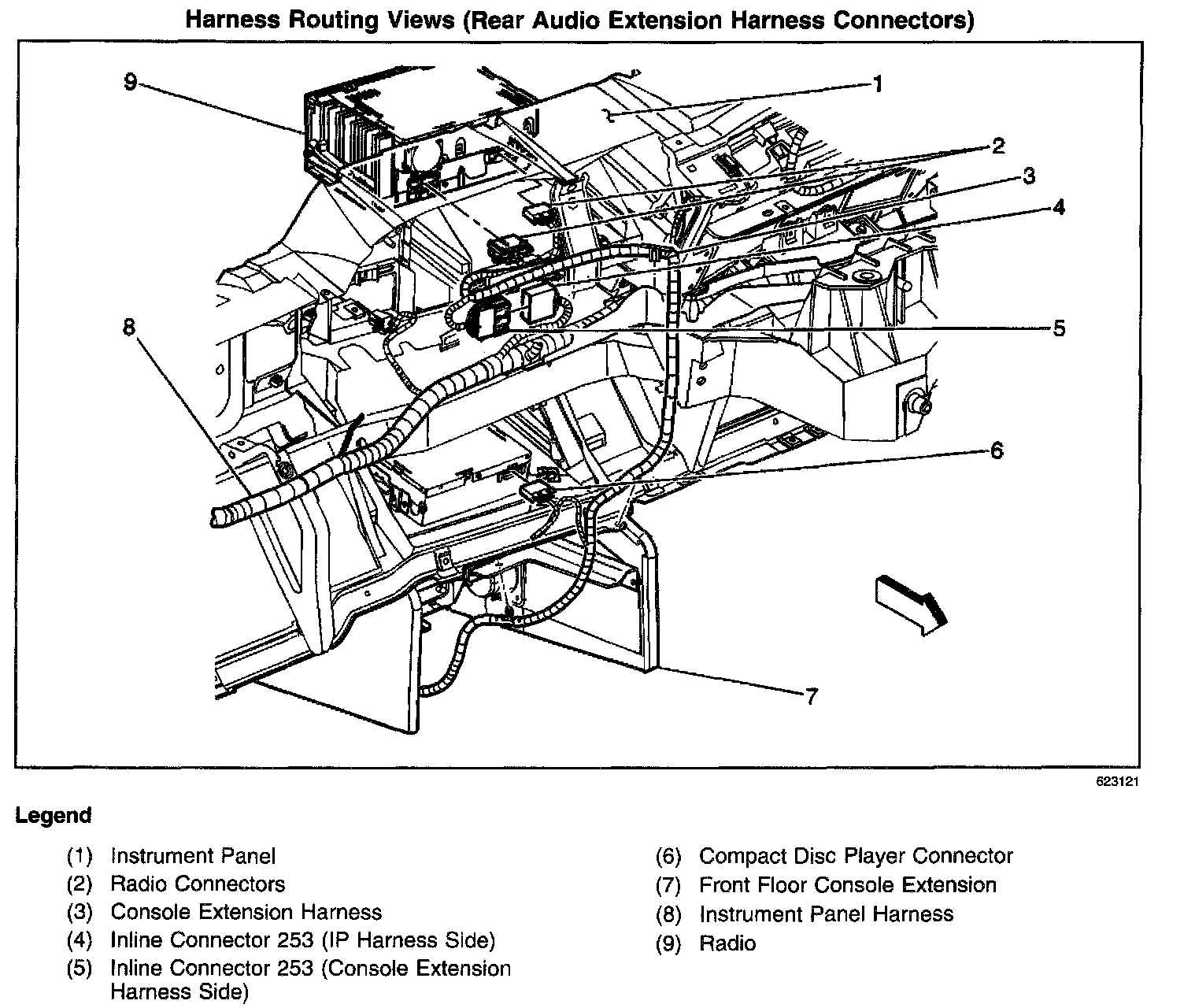 Harness Routing Views (Rear Audio Extension Harness Connectors):