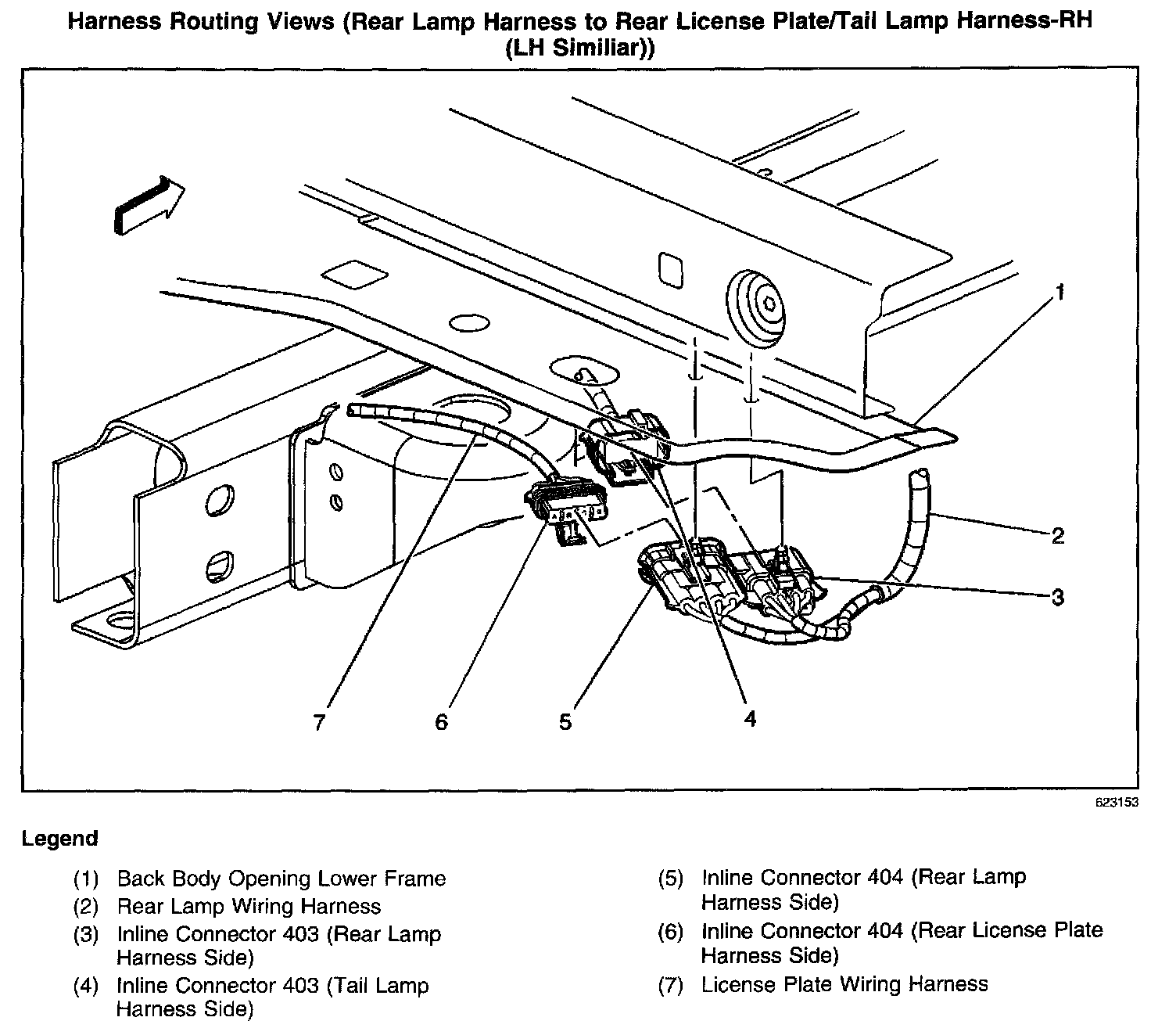 Harness Routing Views (Rear Lamp Harness to Rear License Plate/Tail Lamp Harness-RH (LH Similar)):