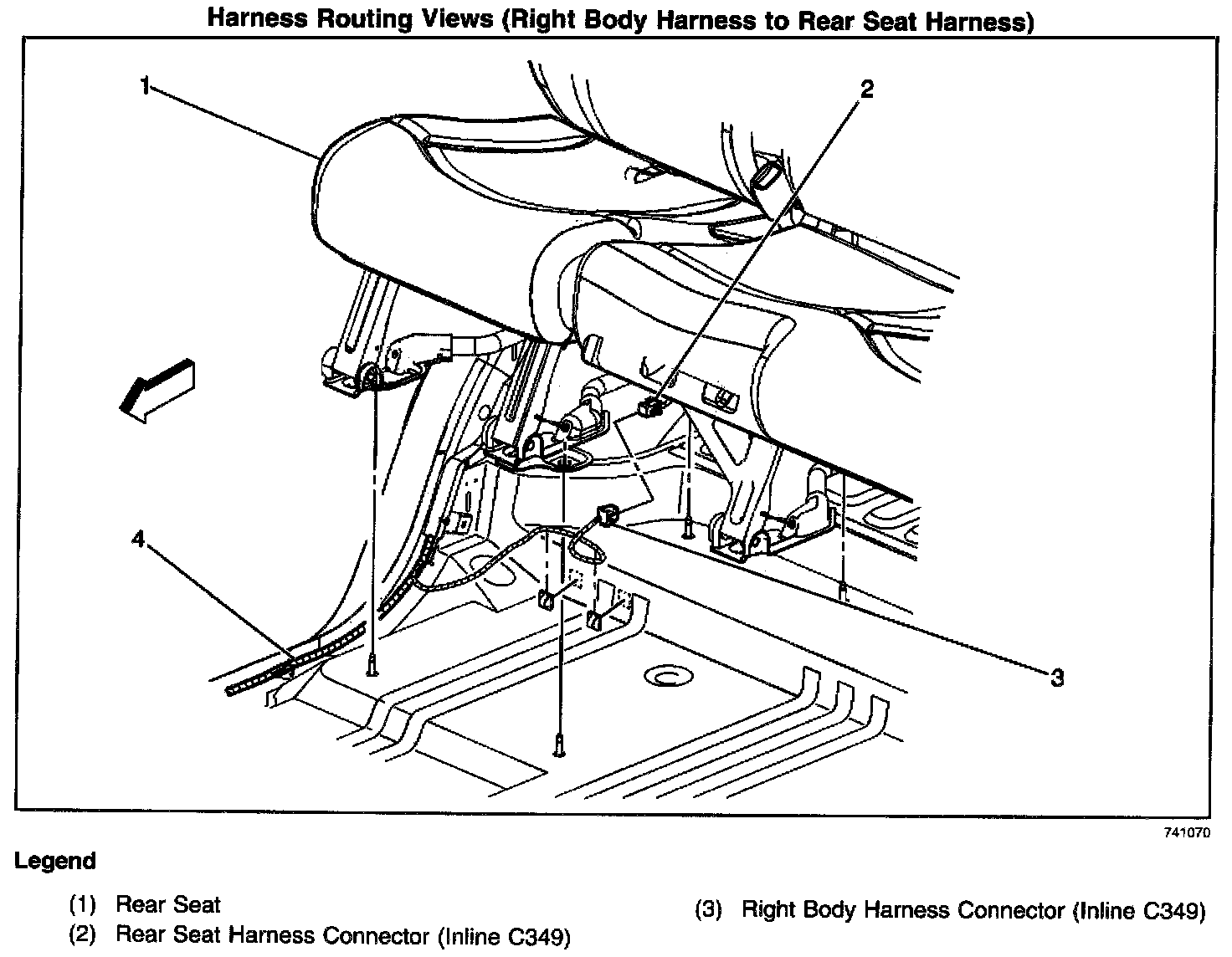 Harness Routing Views (Right Body Harness to Rear Seat Harness):