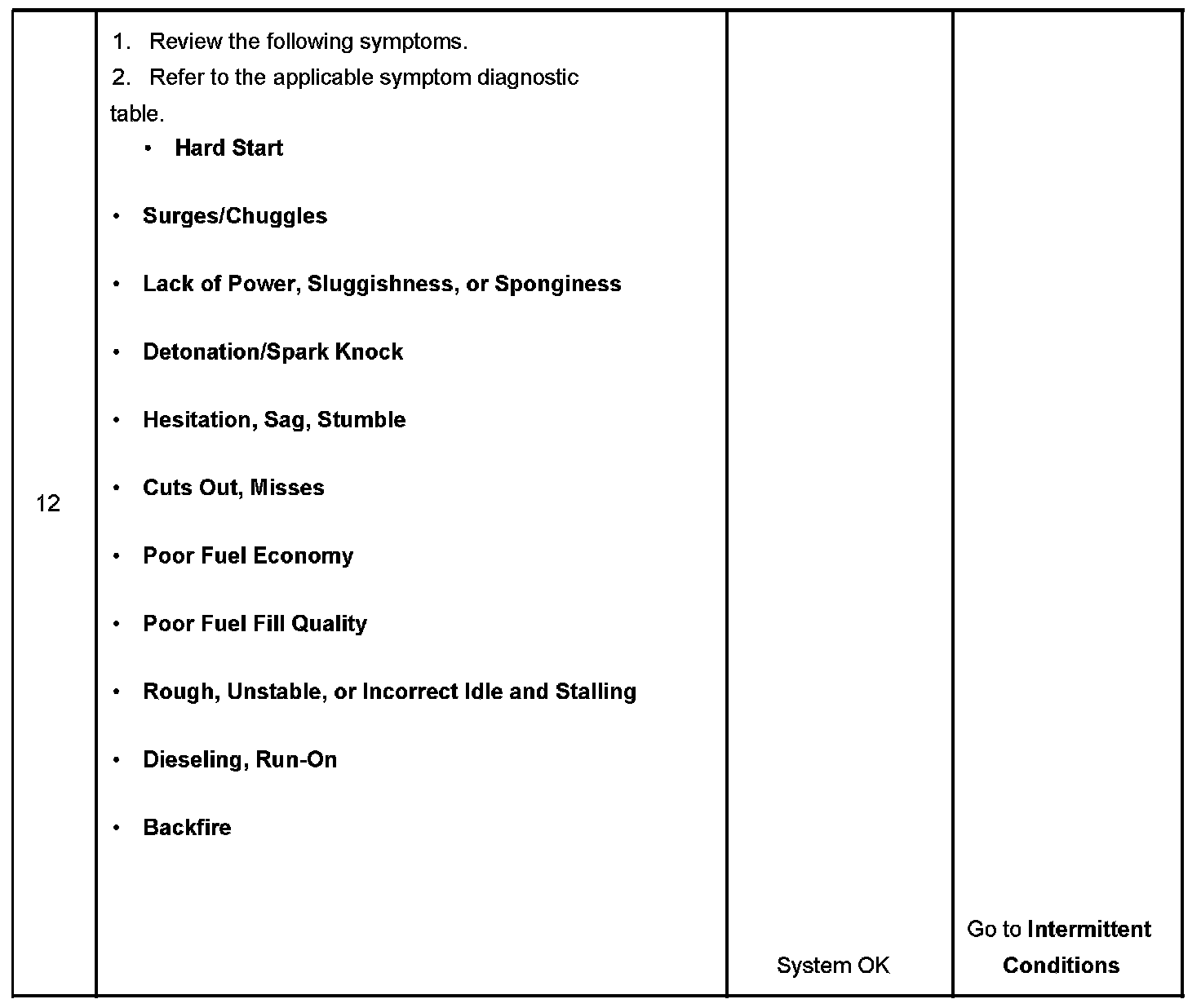 The Diagnostic System Check-Engine Controls is an organized approach to identifying a condition that is created by a malfunction in the engine control system. The Diagnostic System Check must be the starting point for any driveability concern. The Diagnostic System Check directs the service technician to the next logical step in order to diagnose the concern. Understanding and correctly using the diagnostic table reduces diagnostic time and prevents the replacement of good parts.