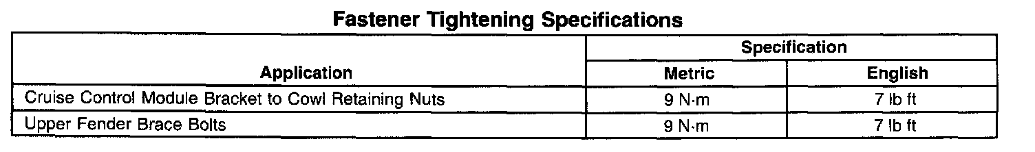 Fastener Tightening Specifications: