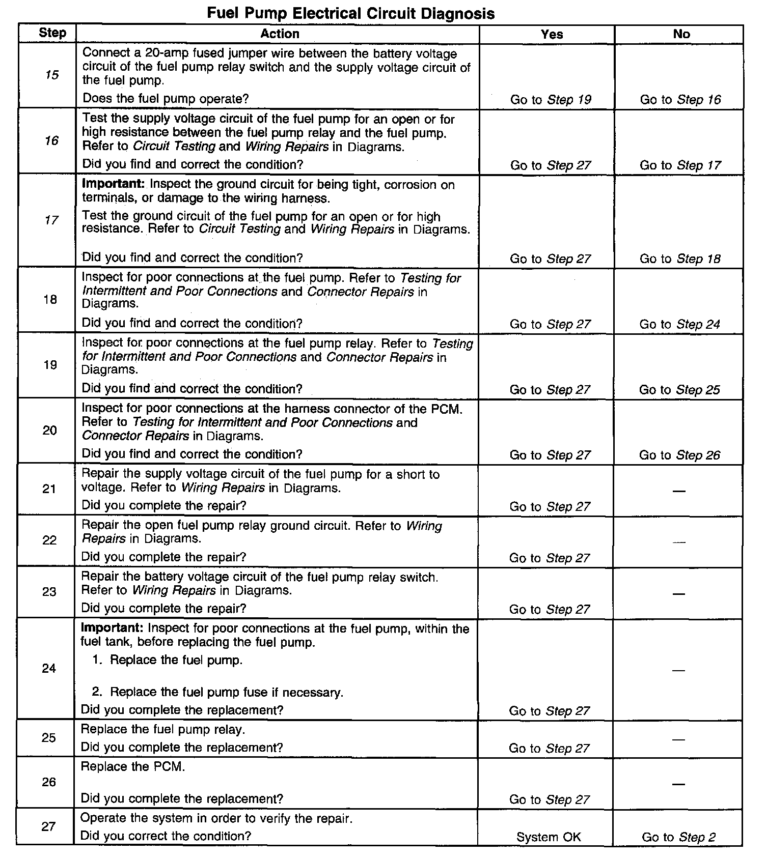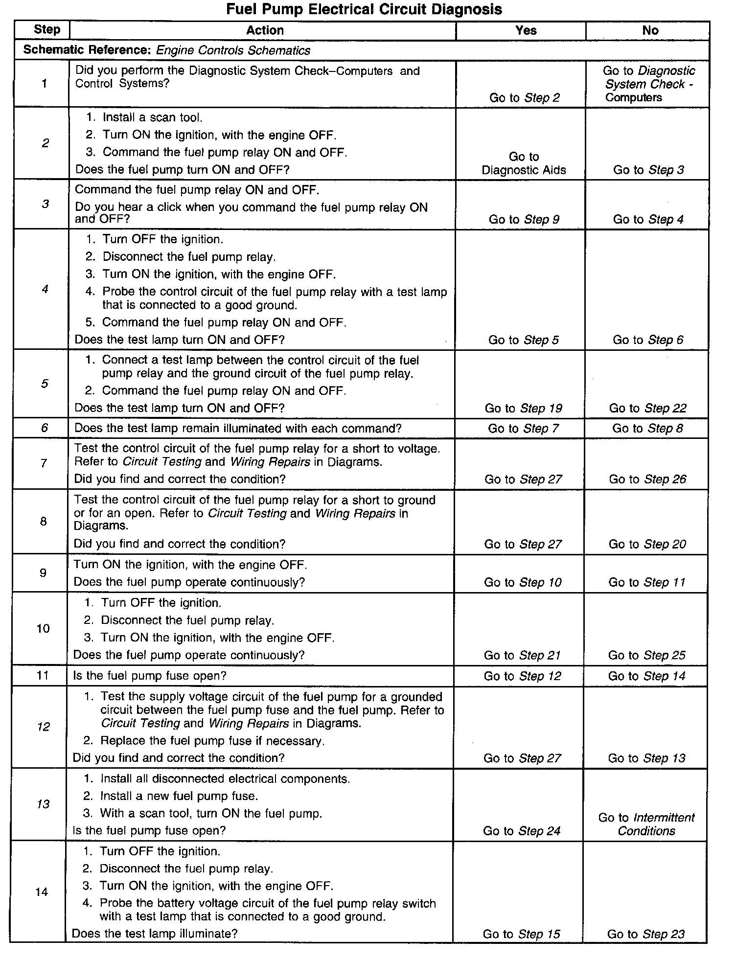 Fuel Pump Electrical Circuit Diagnosis