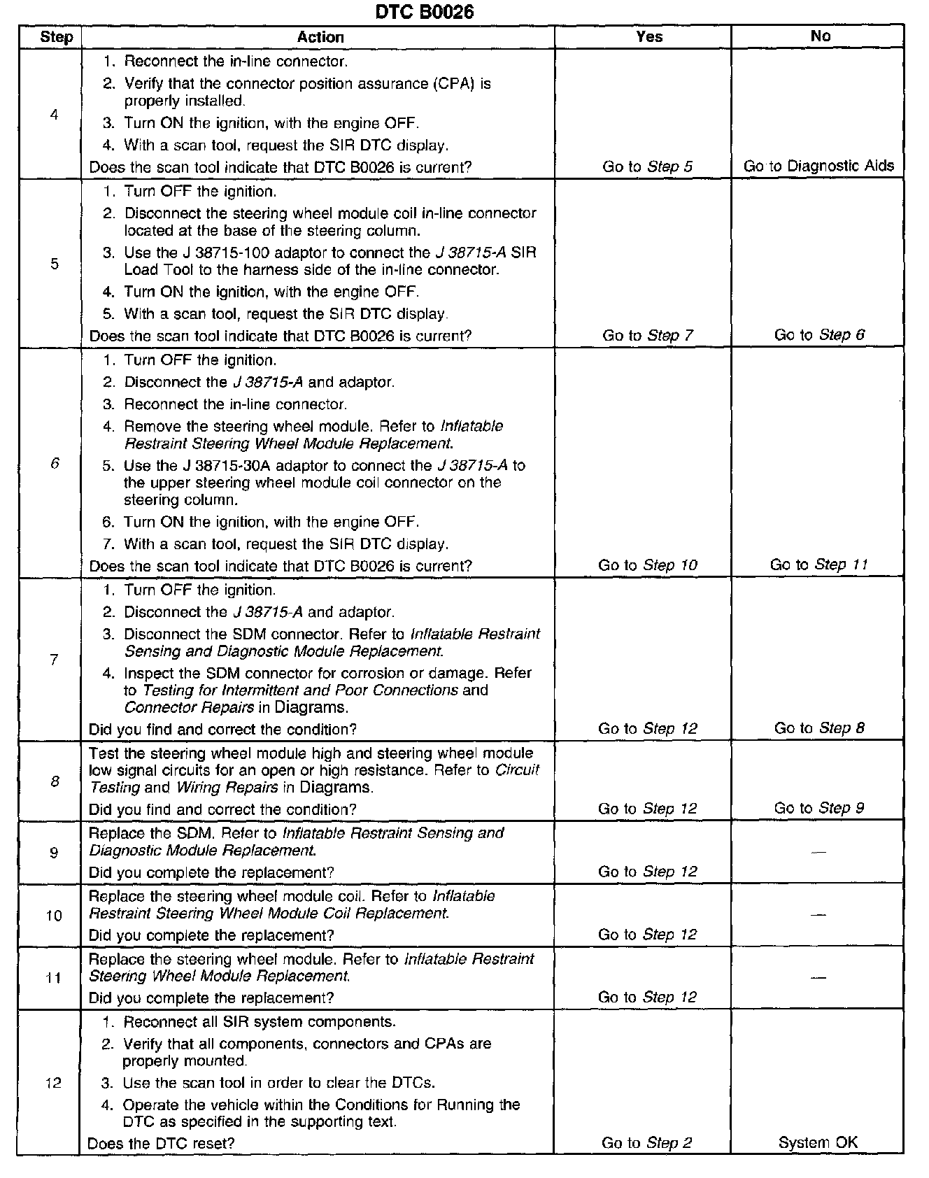 ^ The SDM detects the steering wheel module deployment loop resistance is greater than 4.8 ohms for 500 milliseconds.