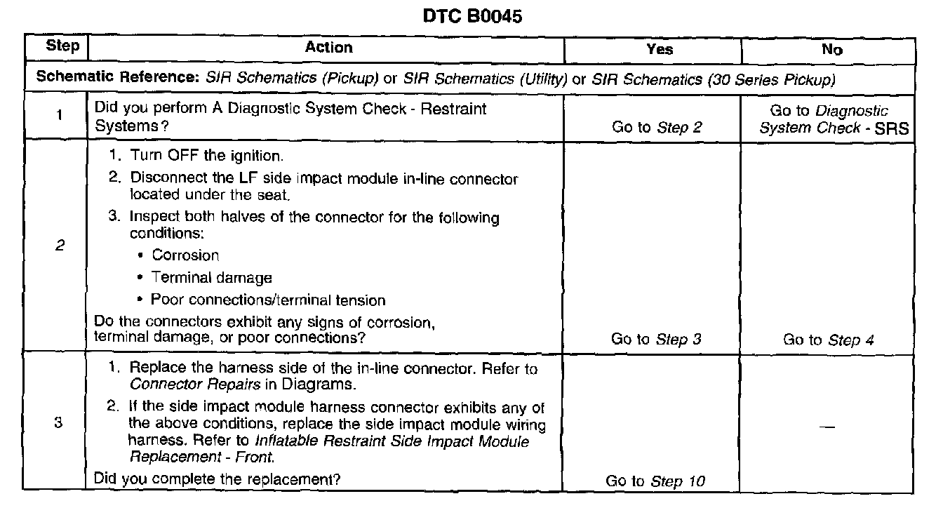 ^ The SDM detects the voltage at LF side impact module high control is less than 2.4 volts and LF side impact module high to LF side impact module low control resistance is less than 6 ohms for 500 milliseconds.