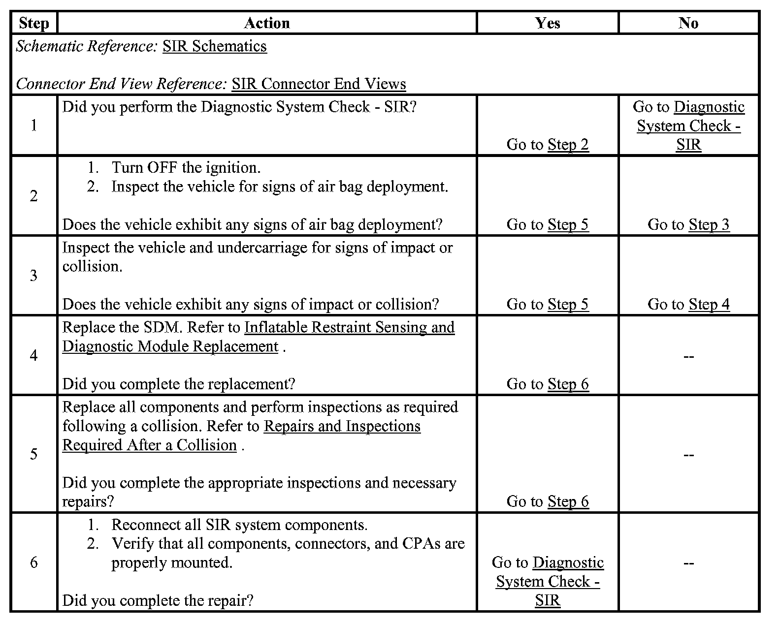 Ignition 1 voltage must be present and the SDM must have commanded an air bag deployment with inflator circuit faults.