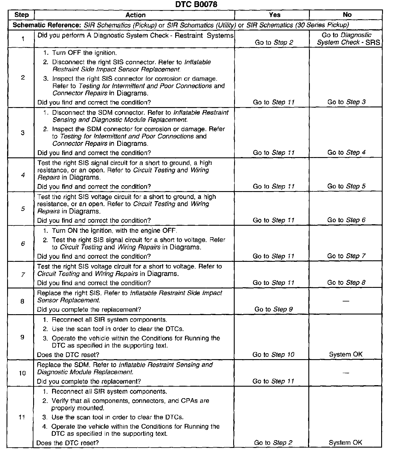 4. Tests for a short to ground, a high resistance, or an open in the right SIS signal circuit.