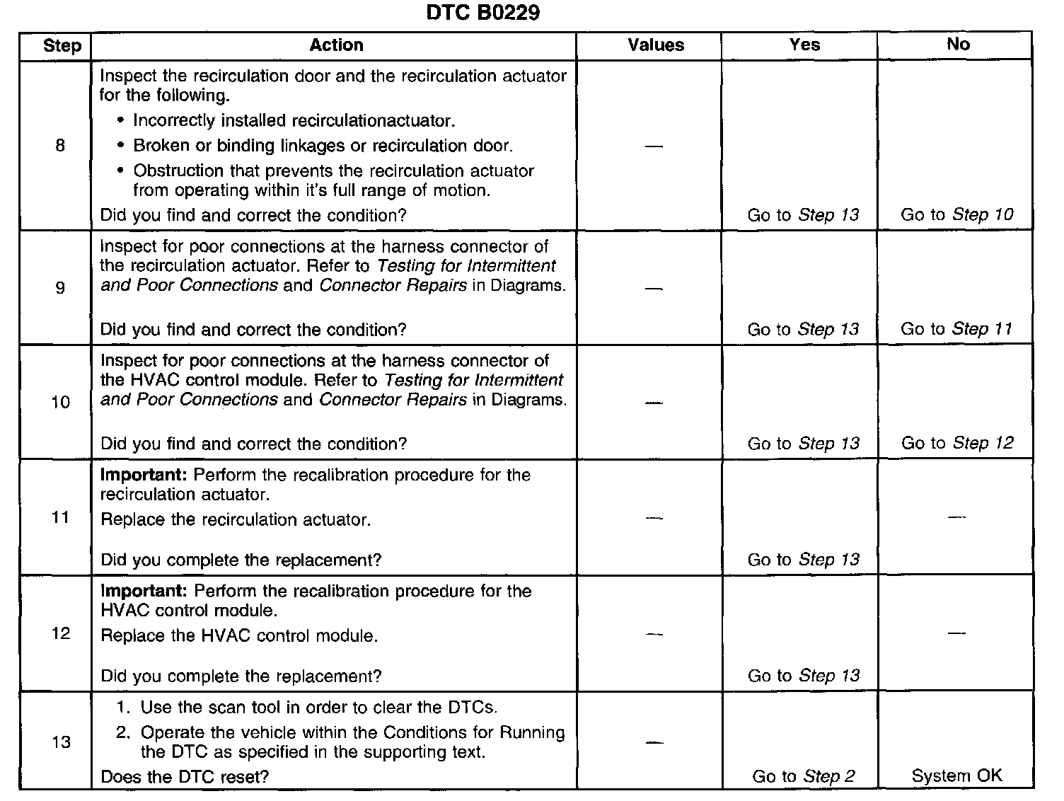 - The range fault can only be detected following a check of the actuator travel range. The actuator travel range check (recalibration procedure) can only be initiated by disrupting power to the HVAC control module.