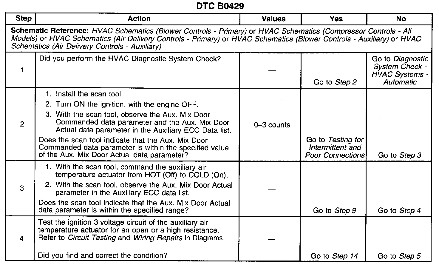 - A damaged or broken auxiliary air temperature door and or actuator can cause this DTC to set.