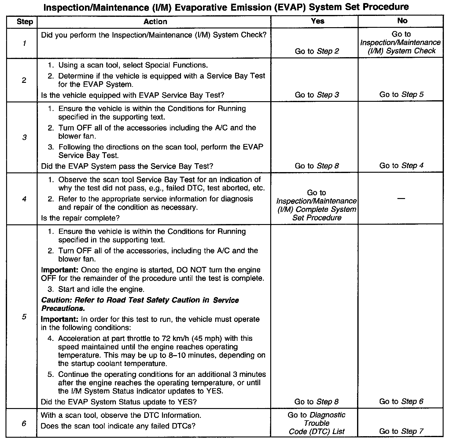 6. This step is to identify a first failure of a type B DTC. A DTC only appears on the I/M System Status display when it becomes a MIL-illuminating DTC. This occurs on the second failure of a type B DTC. A first failure of a type B DTC will not allow the I/M System Status to update to YES. Refer to diagnostic aids.