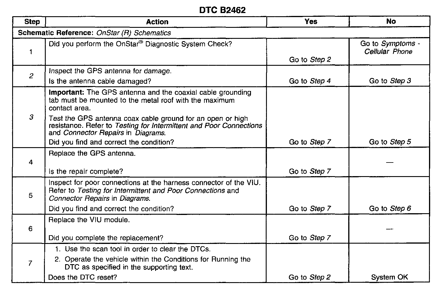 The number(s) below refer to the step number(s) on the diagnostic table.