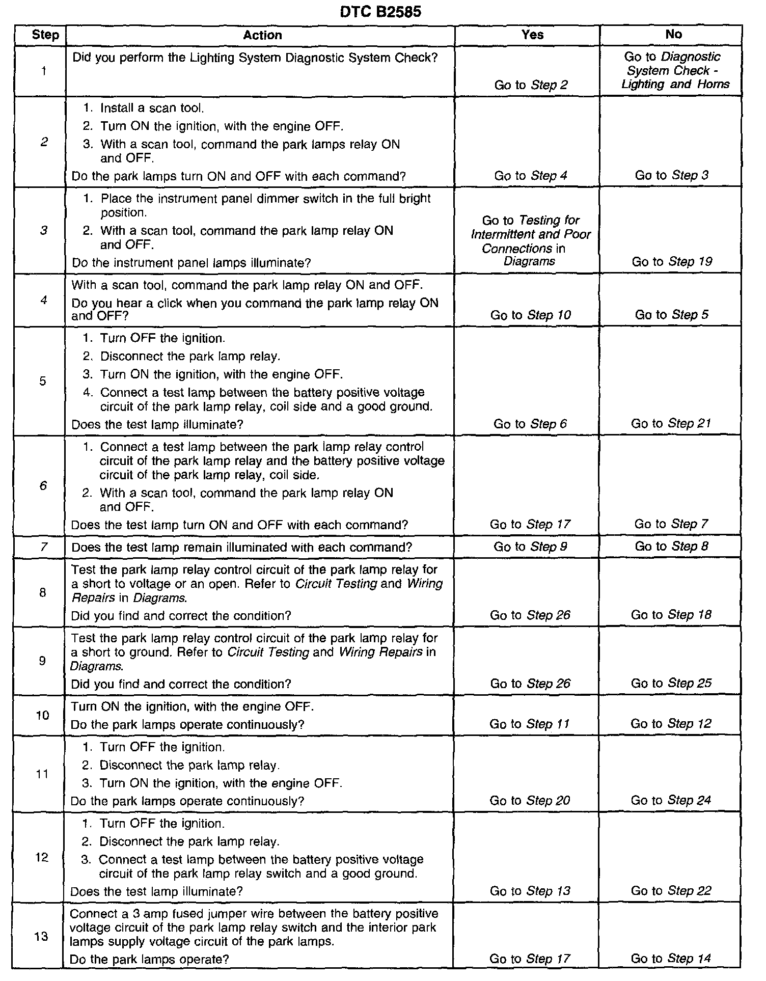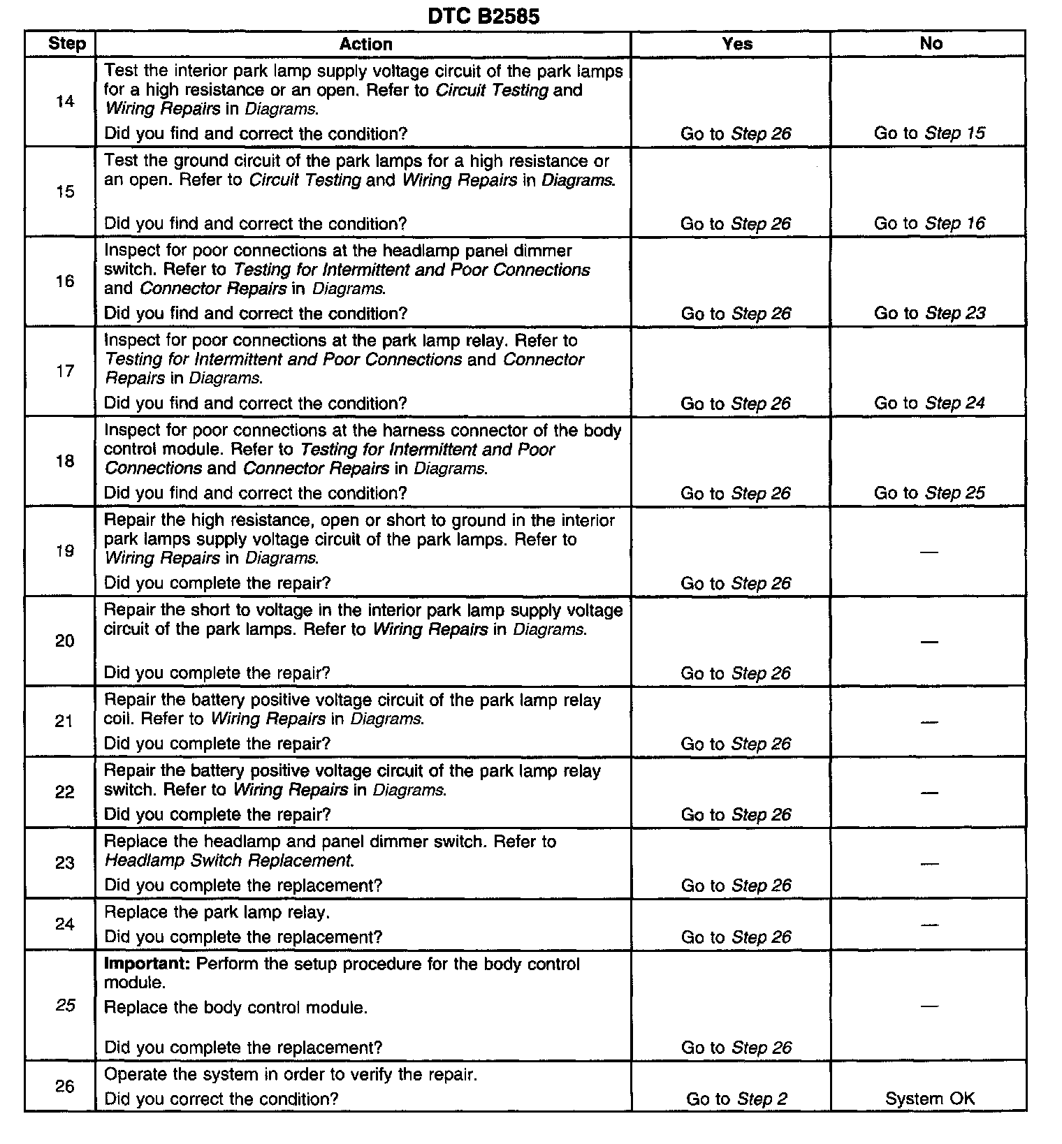 - If the park lamp relay control circuit is open, with the headlamp and panel dimmer switch in the AUTO mode, the DTC will set.