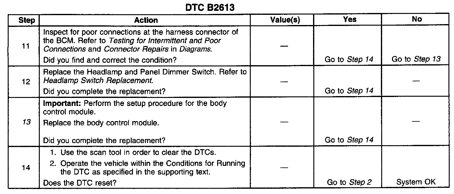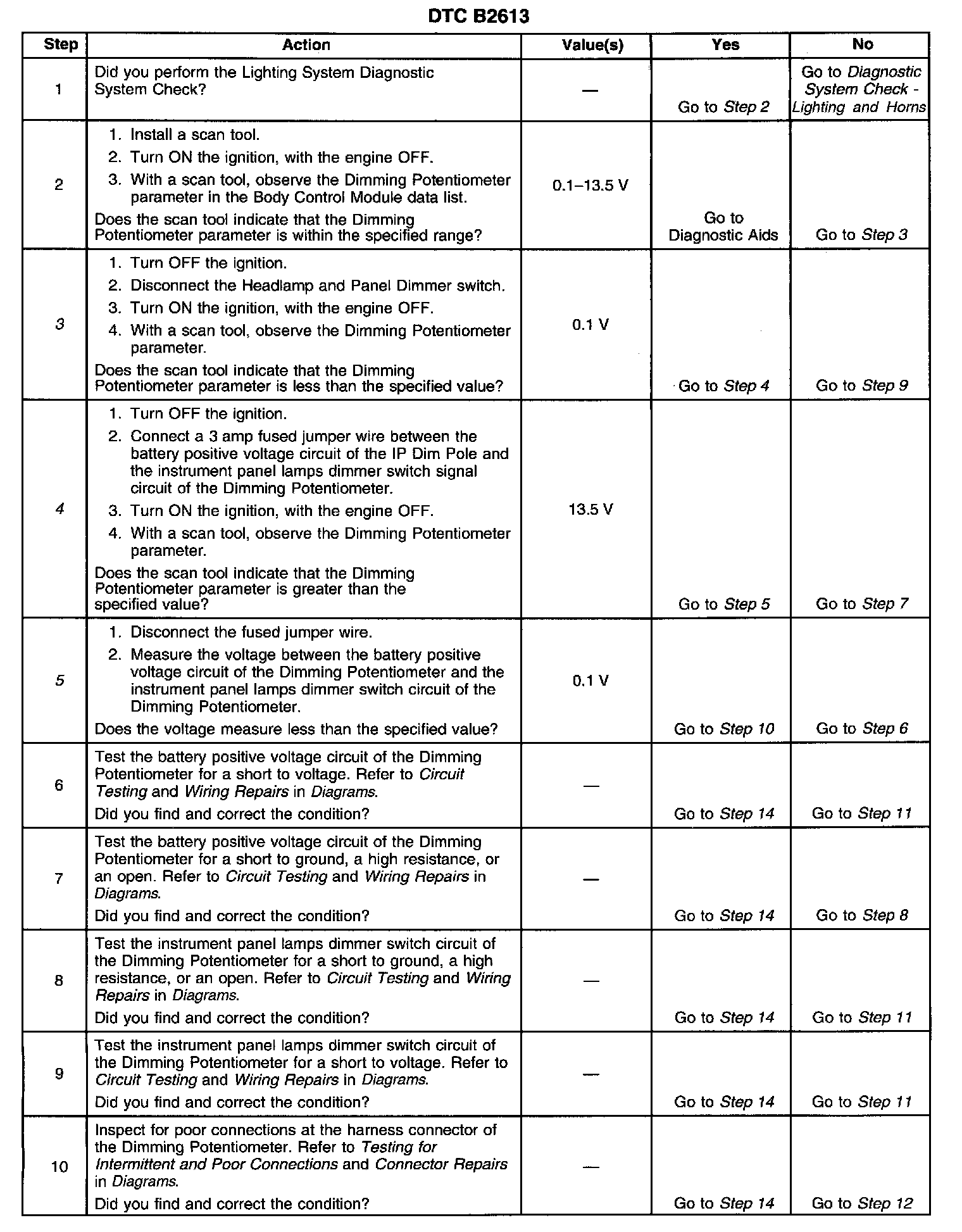 With DTC B2613 set, the instrument panel lights remain full bright at all times.