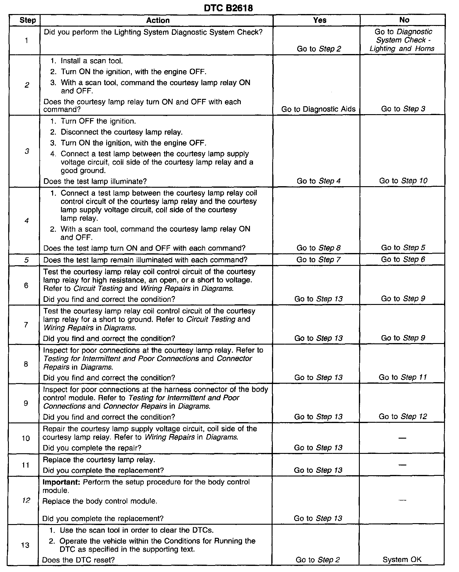 - The scan tool must display DTC B2618 as a current code before performing these diagnostics.