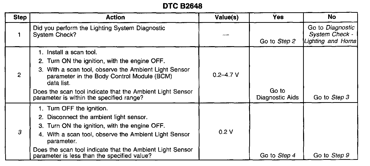 - When the ambient light sensor input voltage is greater than 4.78 volts (the ambient light sensor signal is shorted to the battery).