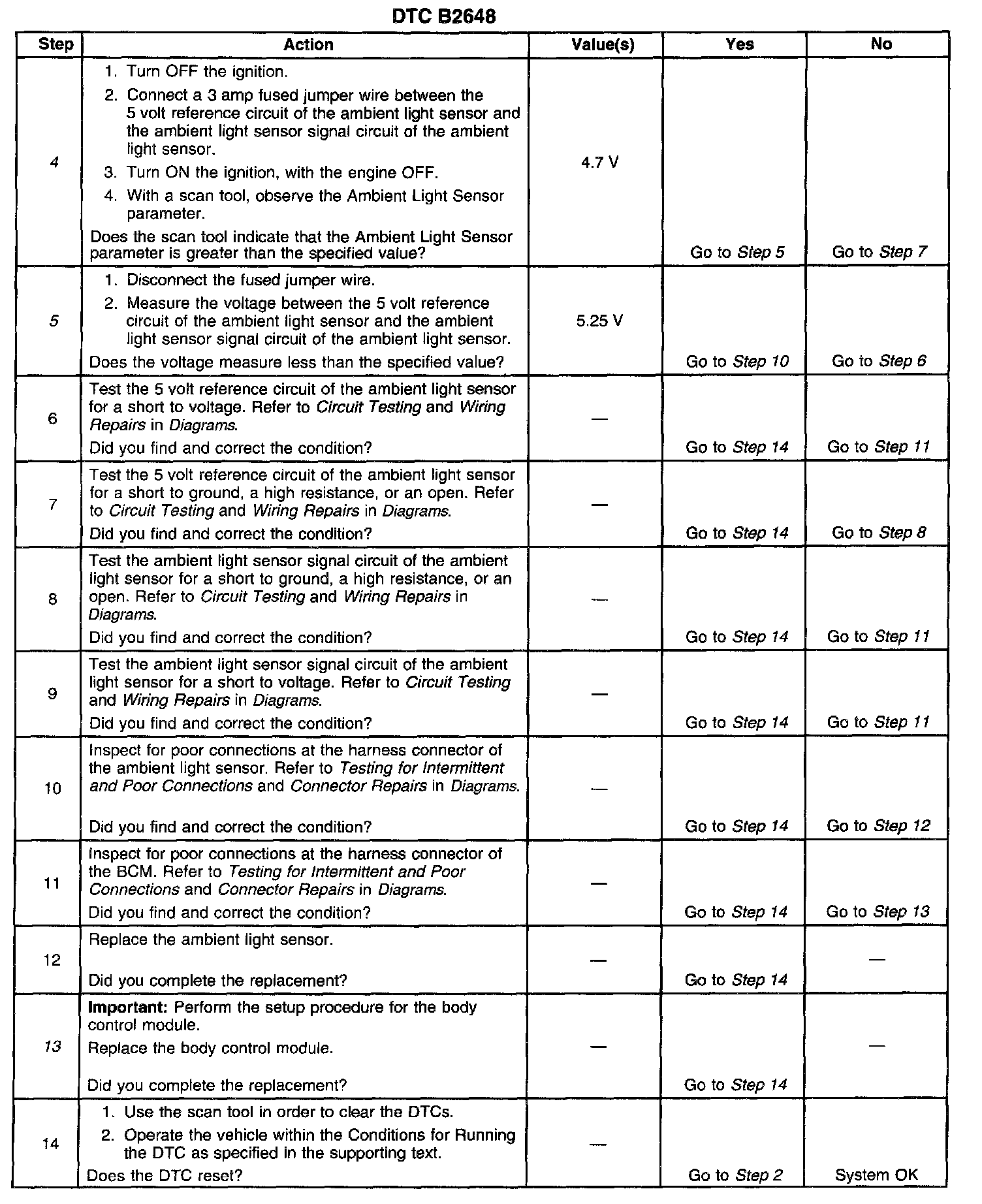 The number(s) below refer to the step number(s) on the diagnostic table.