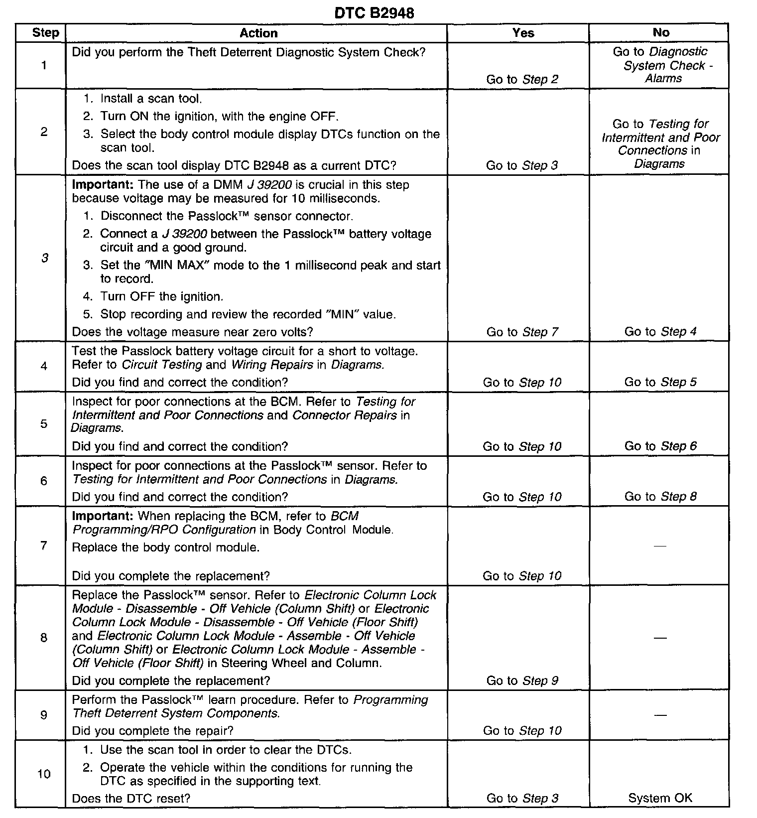 ^ When a short to battery is no longer present on the Passlock sensor power circuit, the ignition switch must be cycled from OFF to ON before this DTC can change from a current DTC to a history DTC.