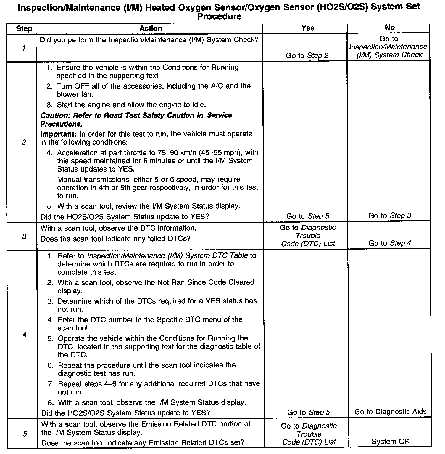 5. The I/M System Status only reports on whether or not a diagnostic has run, not the outcome of the test. If any Emission Related DTC sets after the tests are complete, the DTC will require diagnosis.