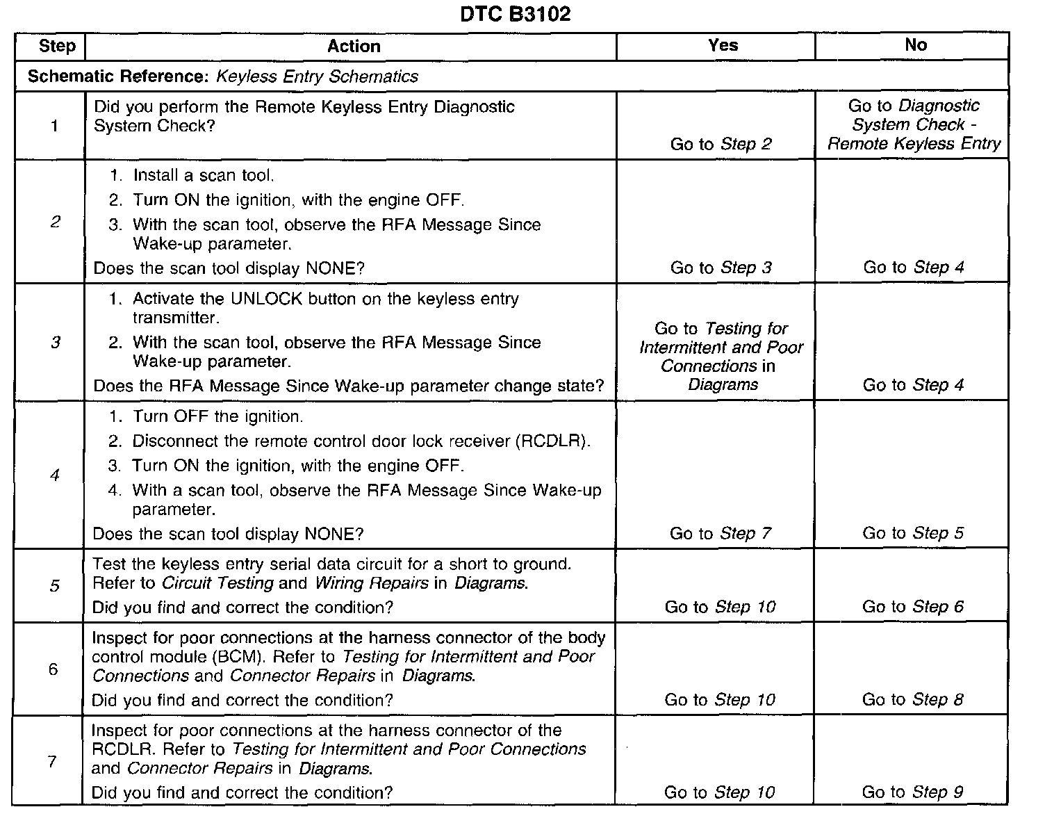 The number(s) below refer to the step number(s) on the diagnostic table.