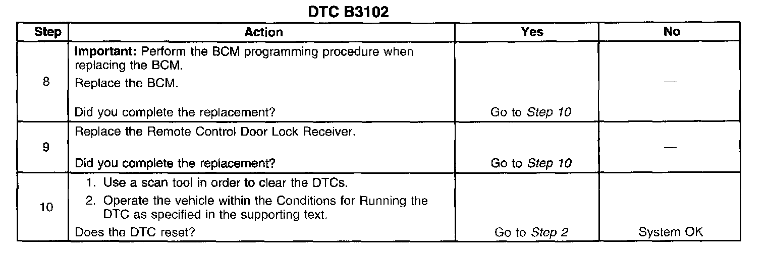 CIRCUIT DESCRIPTIONThe Remote Control Door Lock Receiver (RCDLR) communicates with the Body Control Module (BCM) through the keyless entry serial data circuit. When any button on the keyless entry transmitter is pressed, the transmitter sends a signal to the RCDLR. The RCDLR sends either a lock or unlock request to the BCM, depending on which button is pressed on the transmitter. The BCM receives the message and performs the appropriate function.