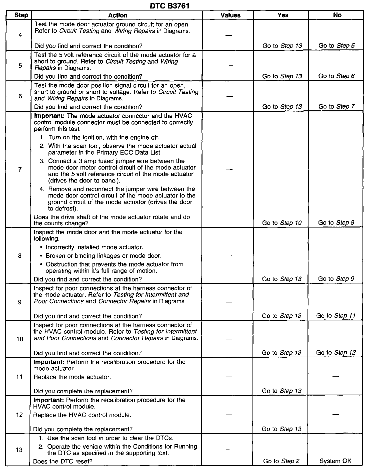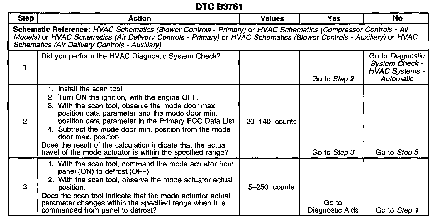 - A damaged or broken mode door and or actuator can cause this DTC to set.