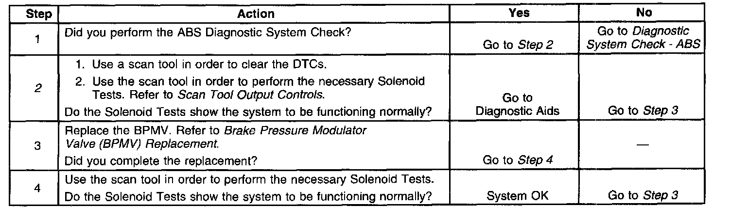2. Performing solenoid tests determines if there is a mechanical malfunction inside the BPMV. Perform dump valve solenoid tests for DTC C0269 or isolation valve solenoid tests for DTC C0274.