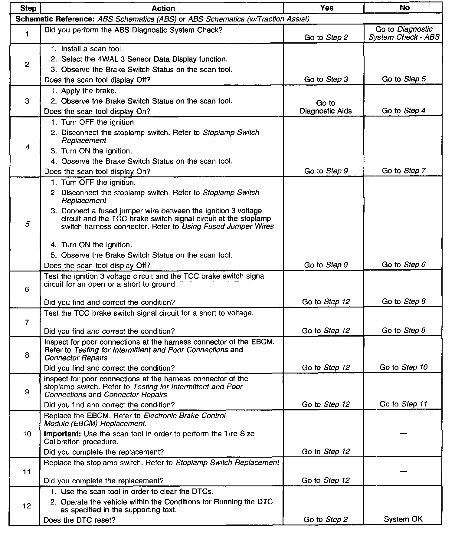 The EBCM detects an open or shorted brake switch or brake switch circuit.