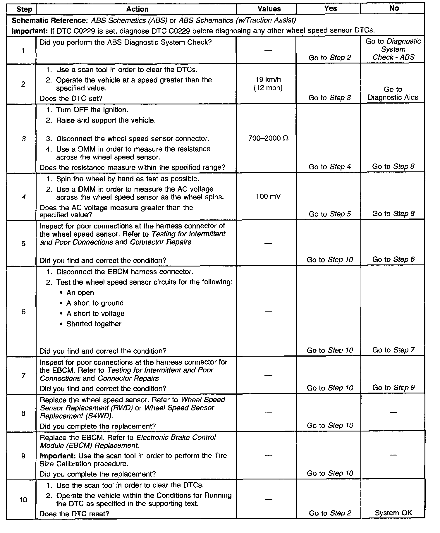 ^ After the DTC is cleared and the ignition is ON, the ABS indicator may remain ON until the EBCM completes a power-up self-test. This test concludes when the vehicle reaches a speed greater than 13 km/h (8 mph) and the wheel speeds are verified by the EBCM.