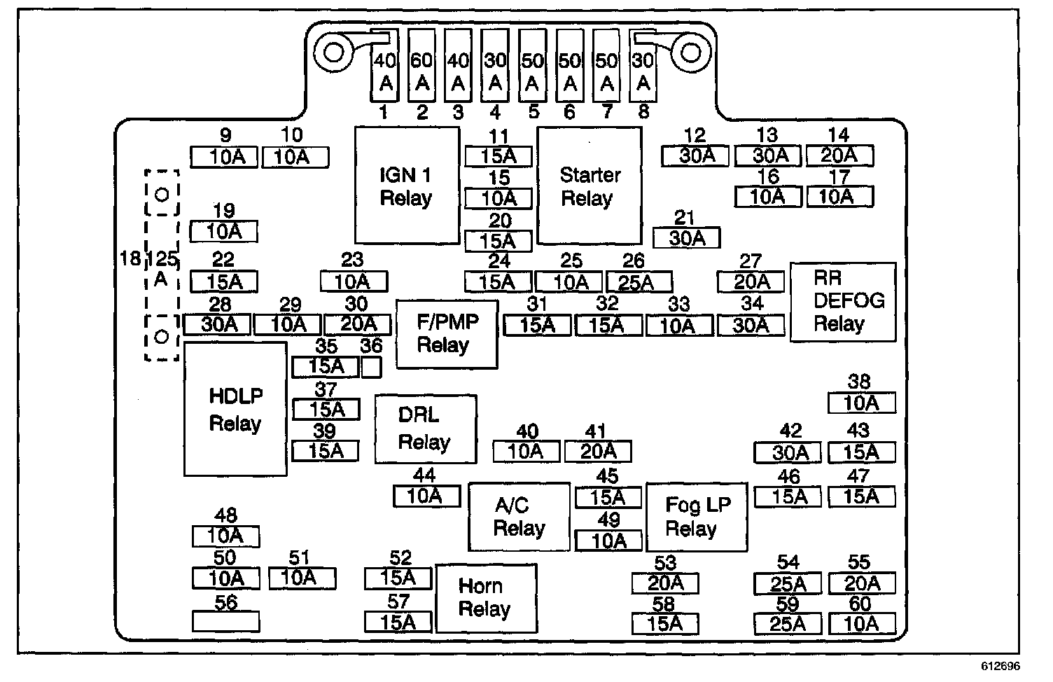 The Fuel Pump Relay is located in the Junction Block - Underhood. The Junction Block - Underhood is located at the left side of the engine compartment near the battery.