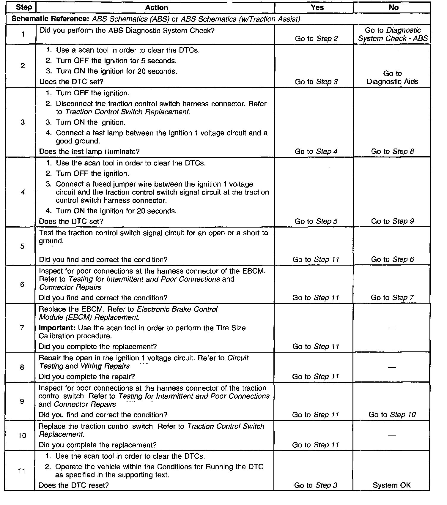 4. This step tests the traction control switch circuitry. If the fuse opens when you perform this test, the traction control switch signal circuit is shorted to ground.