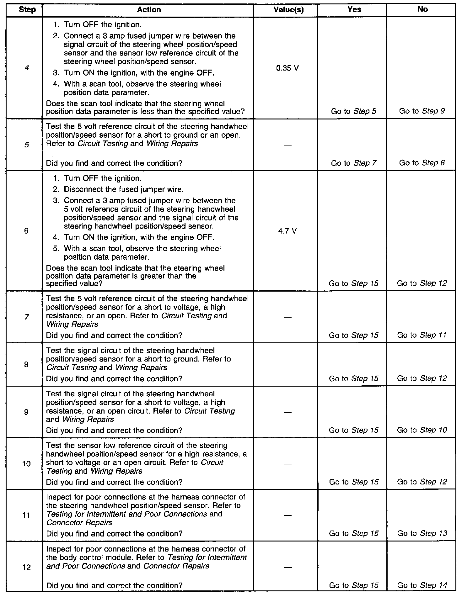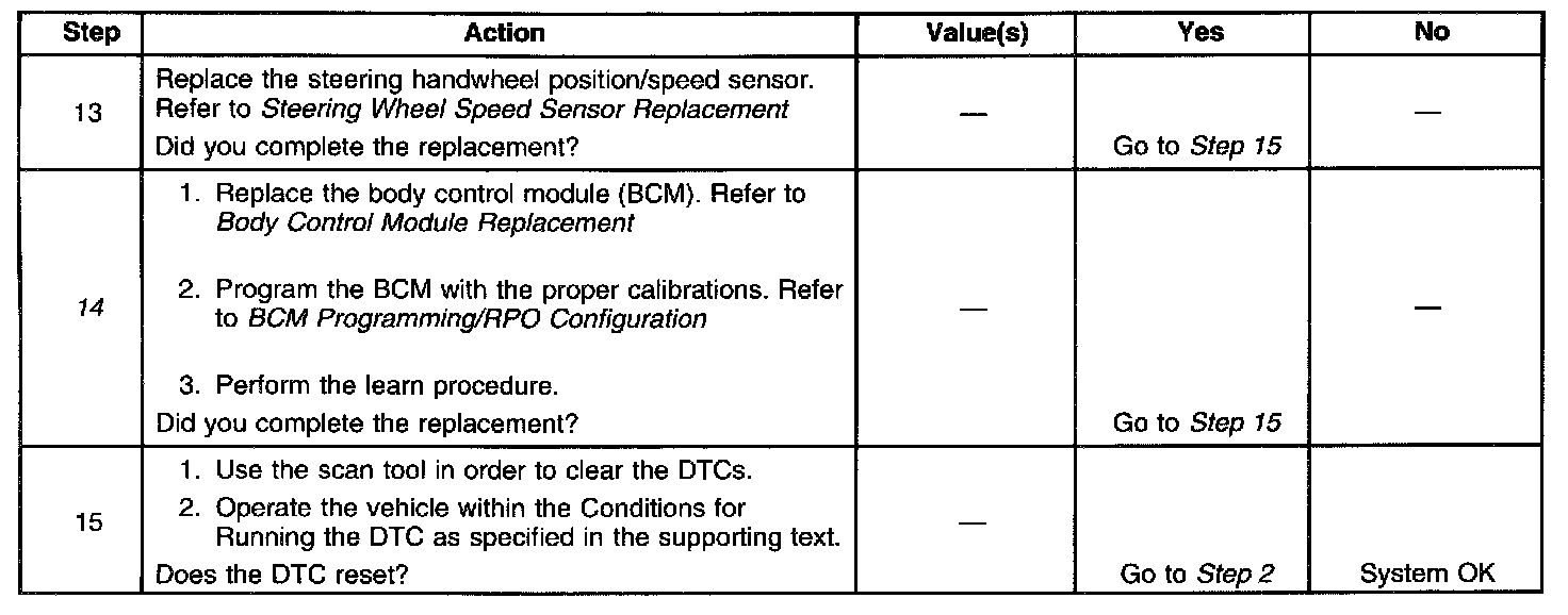 - The body control module no longer detects a steering wheel speed/position sensor out-of-range condition.