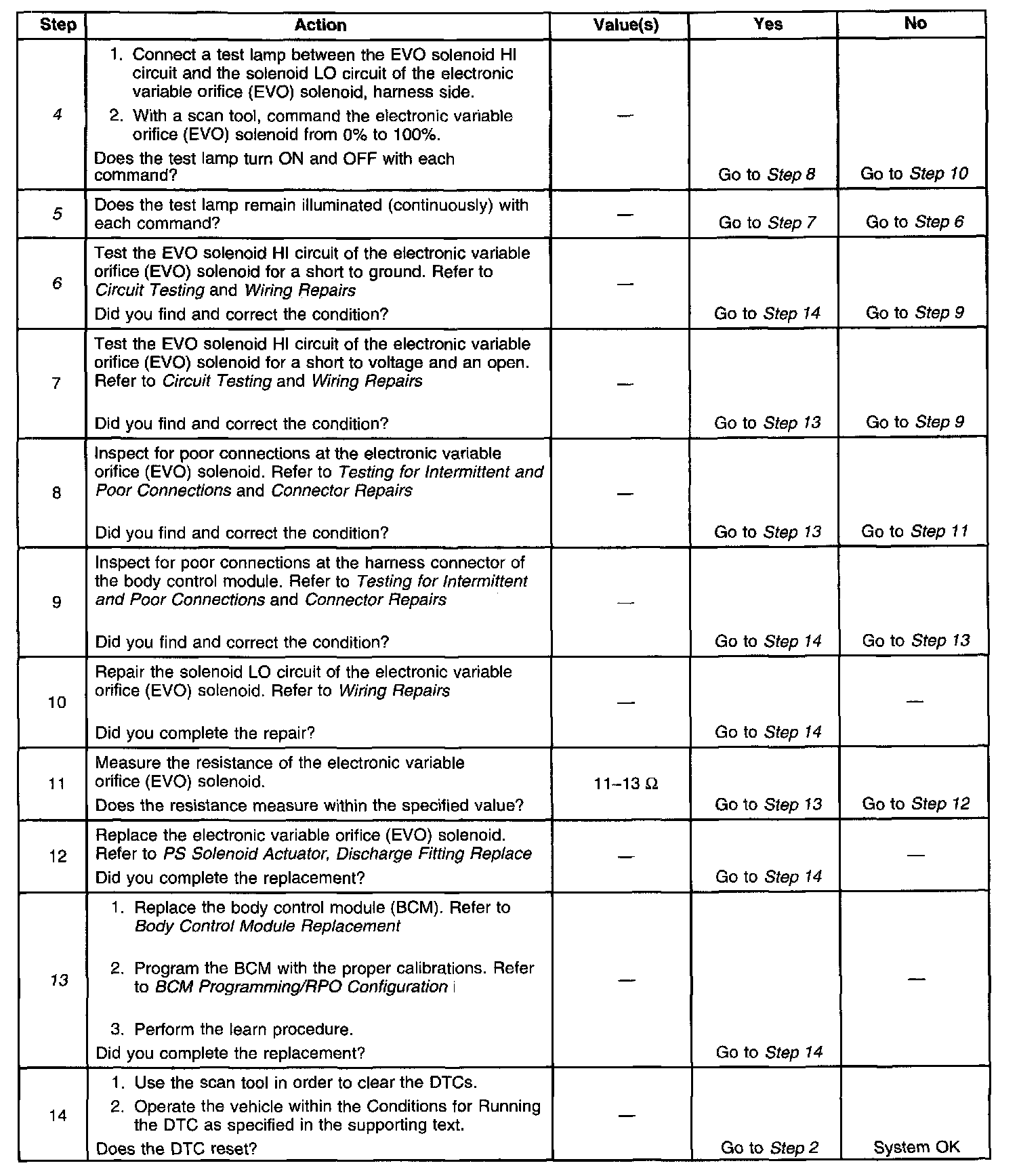 - A internal short of the Electronic Variable Orifice (EVO) solenoid can cause this DTC to set.